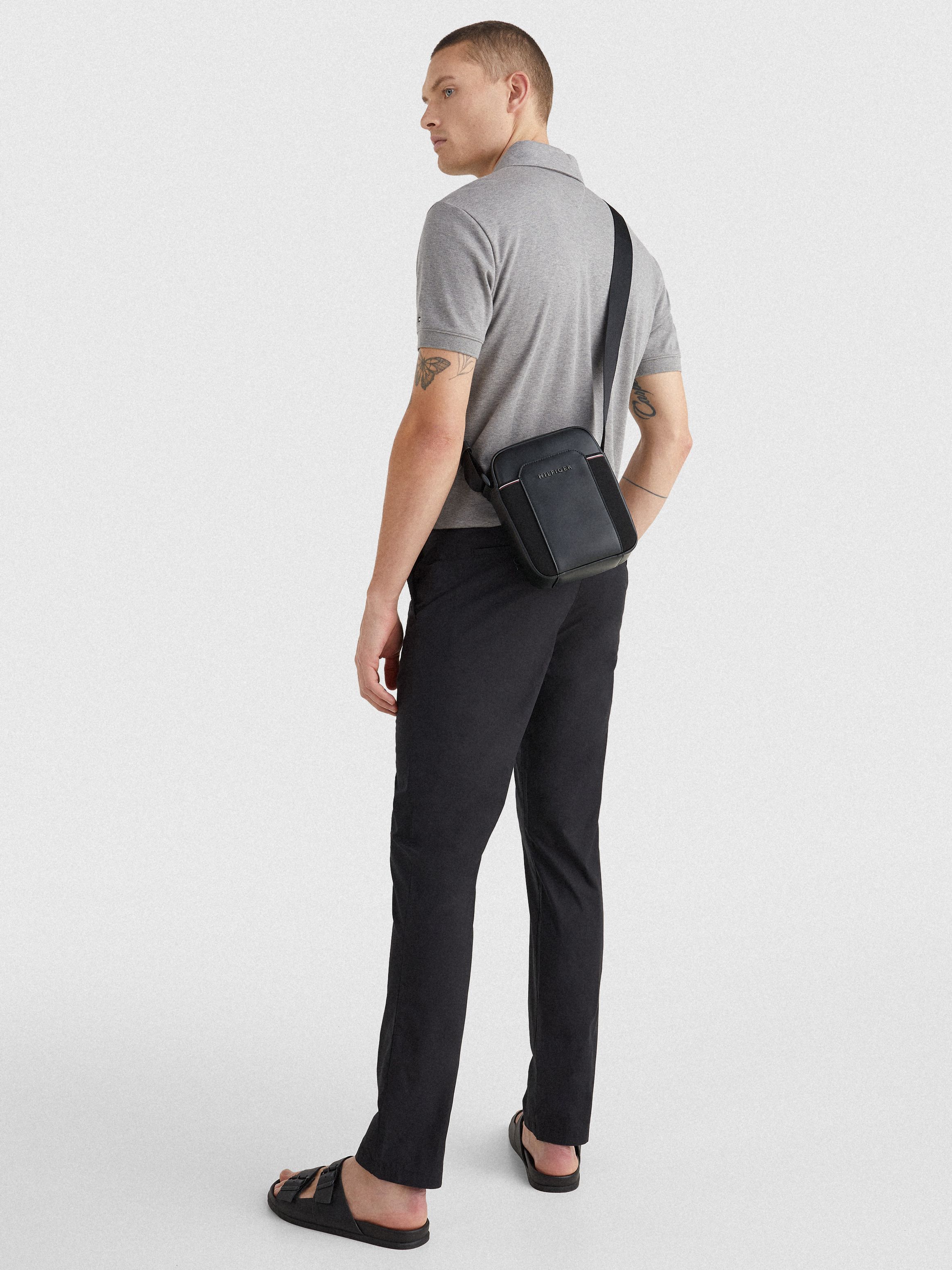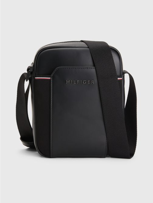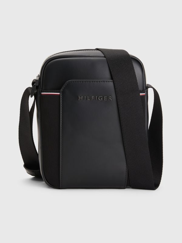 • Recycled polyester blend • Smooth finish • Zip closure • Adjustable shoulder strap • One exterior slip pocket • One interior slip pocket • Tommy Hilfiger metal logo on front • Tommy Hilfiger branding