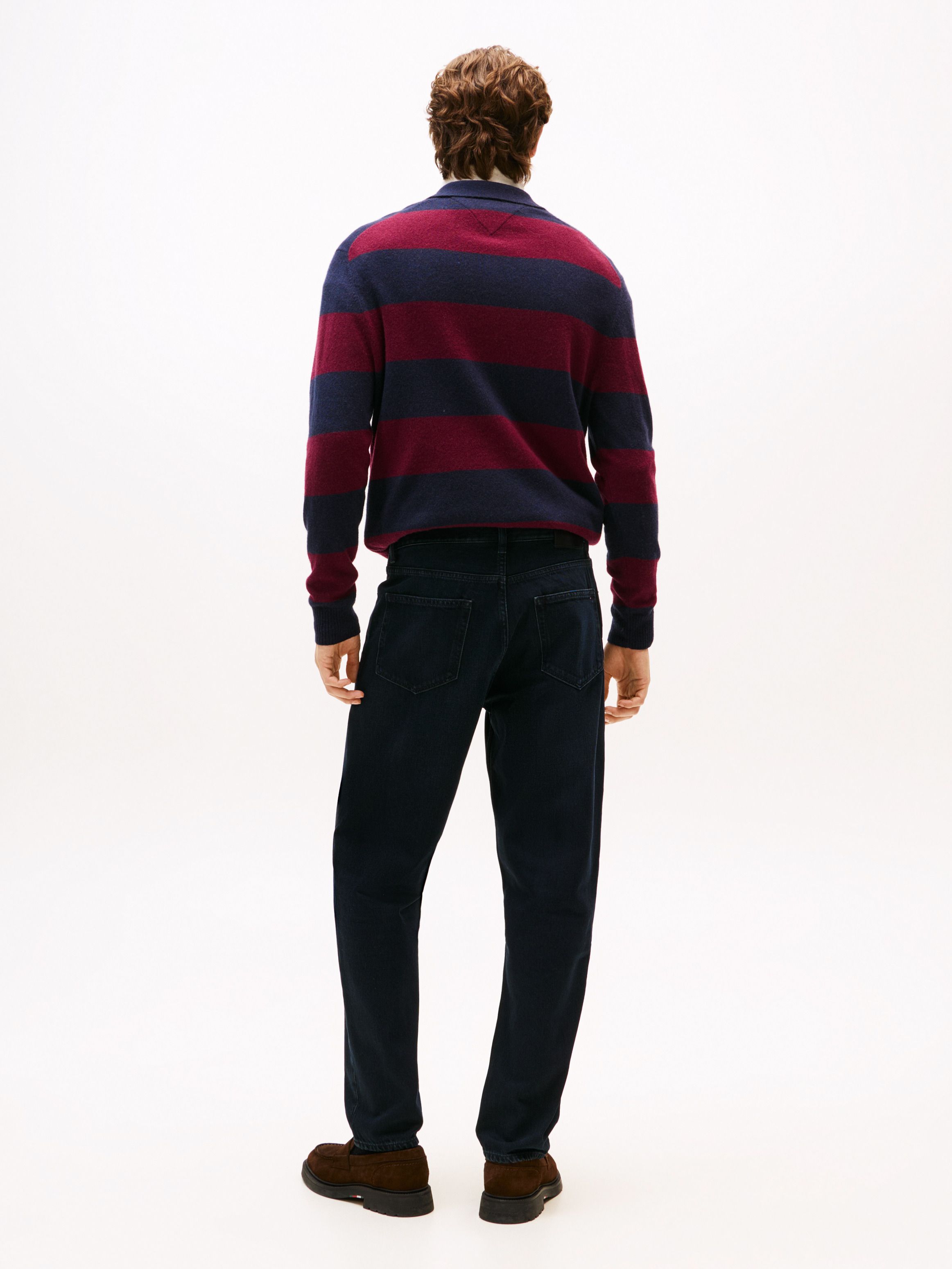 • Rigid denim • Whiskering on front and back • Zip with button closure • Five-pocket styling • Signature tape on coin pocket • Tommy Hilfiger branding • Tommy Hilfiger flag embroidery on back pocket