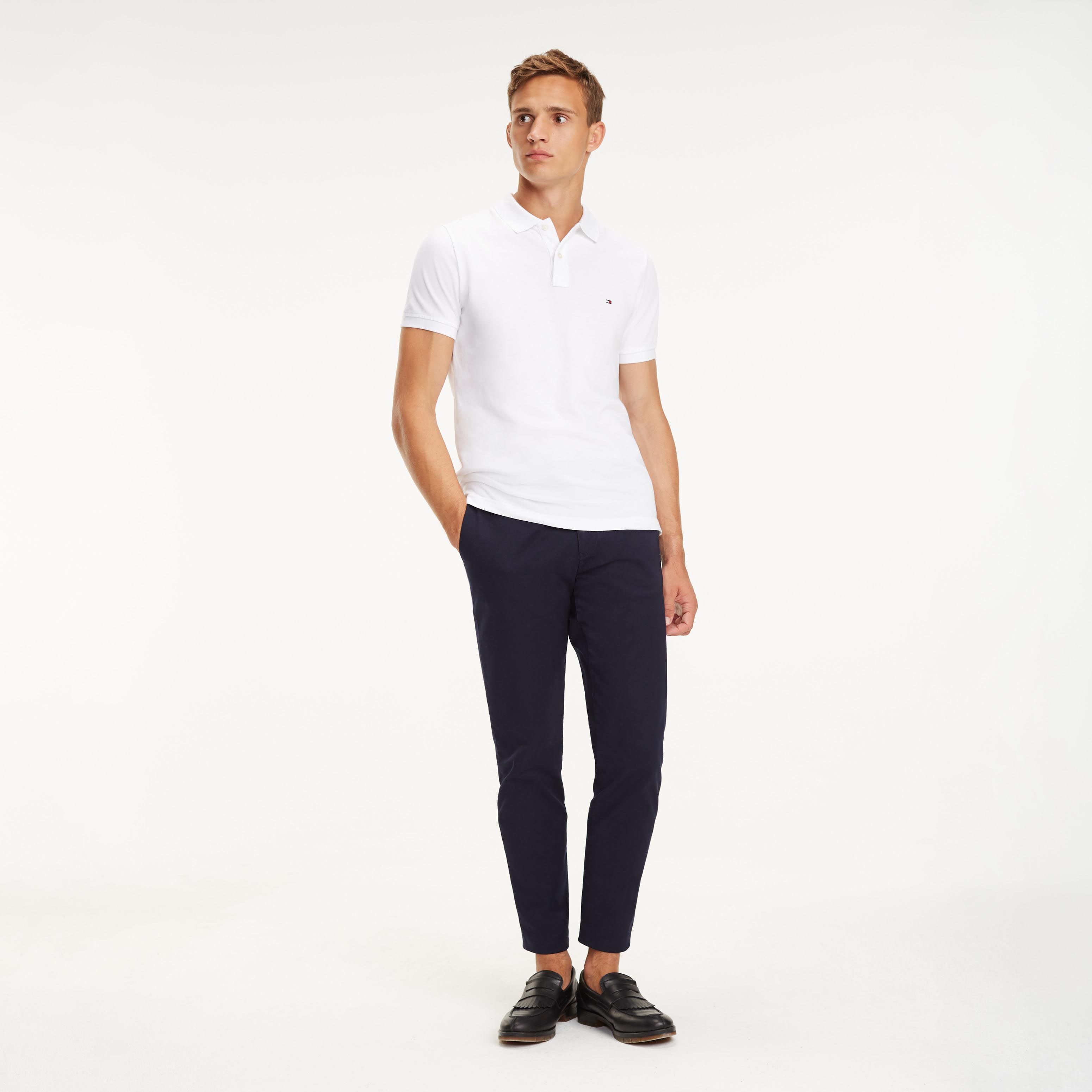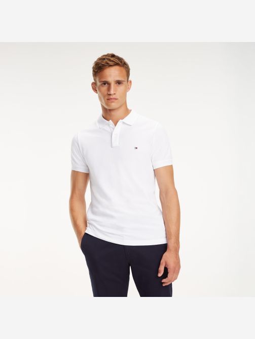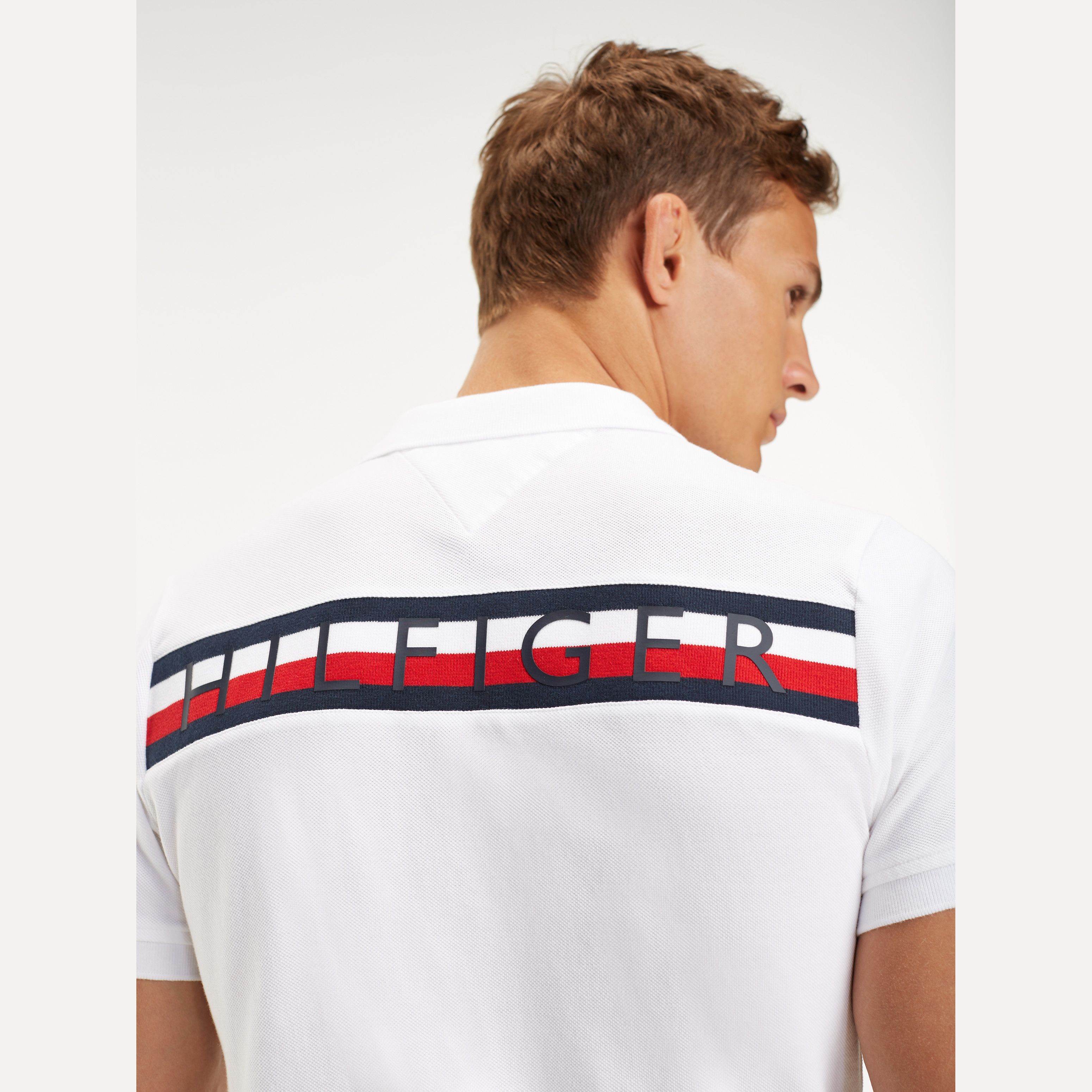 • Pure cotton pique • Signature tape across back • Polo collar • Two-button placket • Signature tape inside neckline • Tommy Hilfiger logo on back • Tommy Hilfiger flag embroidery on chest