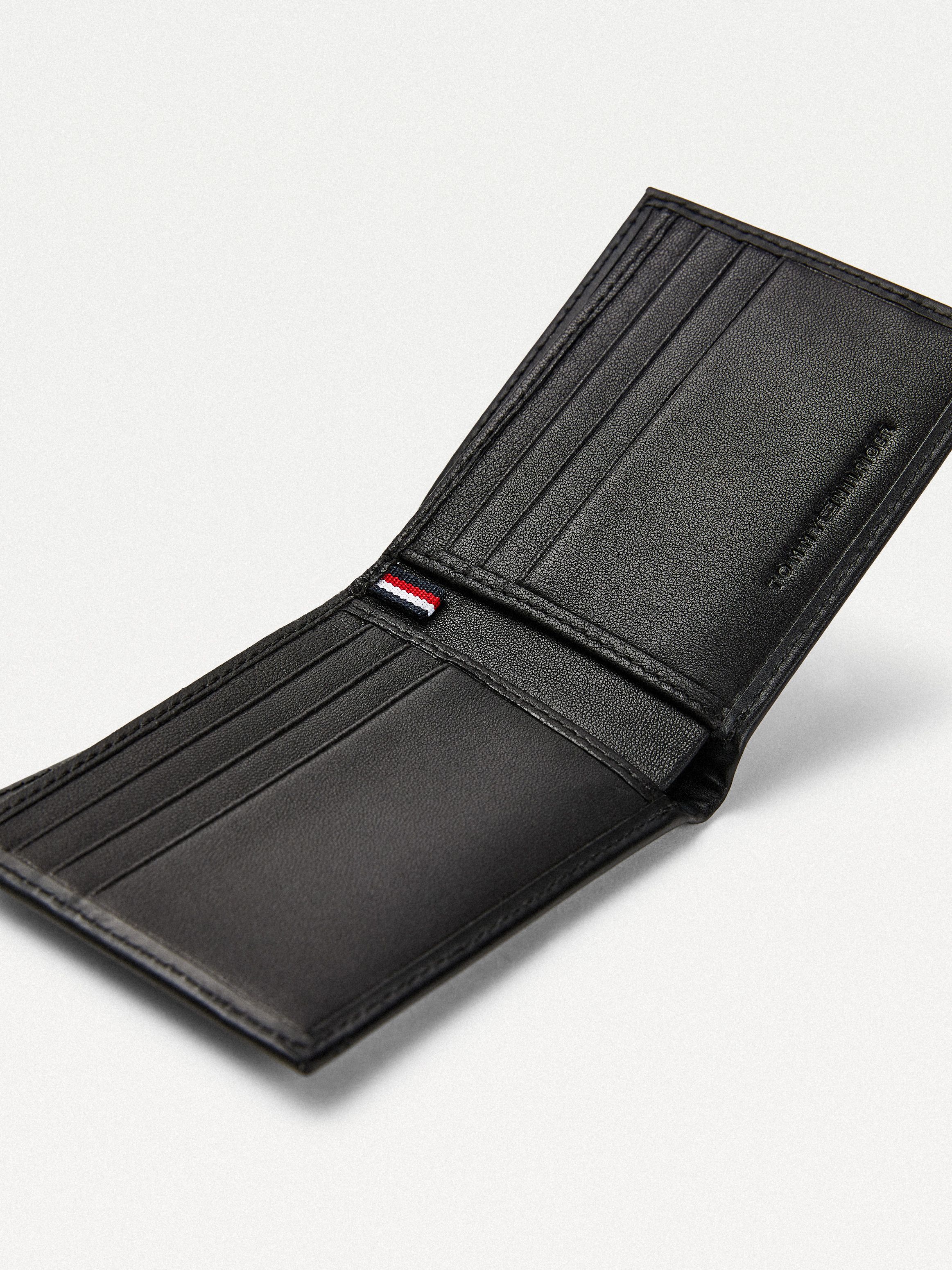 • Leather • Smooth finish • Recycled polyester lining • Multiple interior card slots • One interior billfold pocket • Signature detailing • TH signature logo on front • Tommy Hilfiger logo embossed on interior • Tommy Hilfiger branding