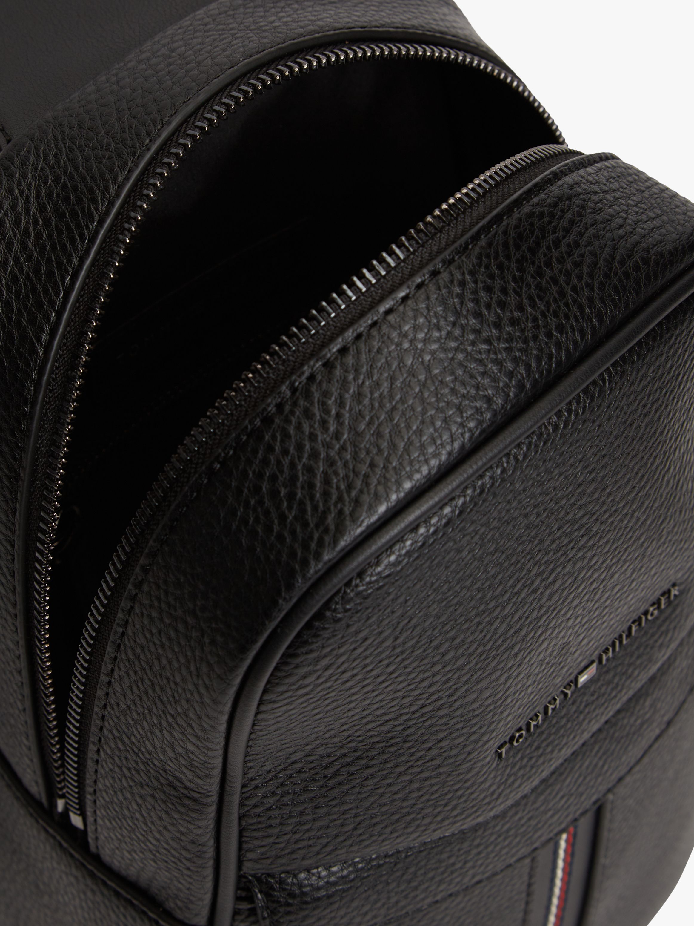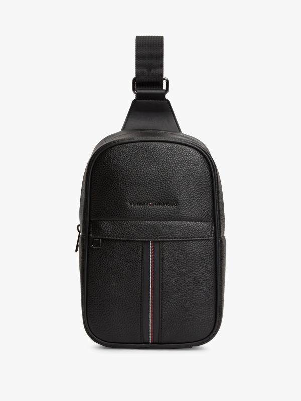 • Flat pebble grain finish • Zip closure • Crossbody strap • One main compartment • One exterior zipped pocket • Signature tape embroidery on front • Tommy Hilfiger metal logo on front • Tommy Hilfiger branding
