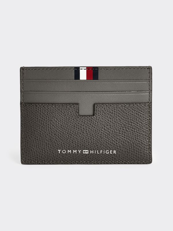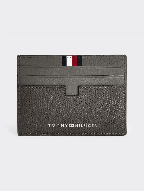 This smart card holder features smooth and pebbled leather panels for a tactile contrast as well as a splash of signature colour.